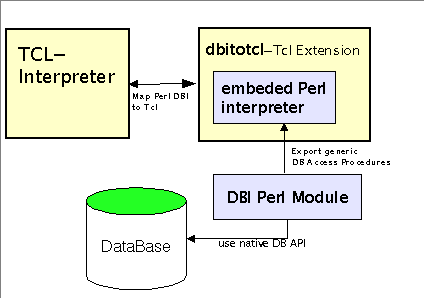 It is in principle better way to use special Tcl-Extension for your Database (mysqltcl,oratcl,pgtcl,adatcl) but by using this library you can access to database, which have no Tcl-Extension and you have more generic API (like ODBC) and some special functions as Meta-Data (Catalog) access. So you can use very good Perl-DBI interface from Tcl.