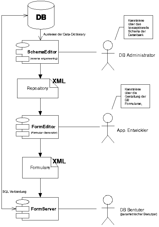 Die Schnittstellen zwischen den einzelnen Programme sind 2 XML-Dokumenten Typen; das Repository (Standard Datei-Erweiterung