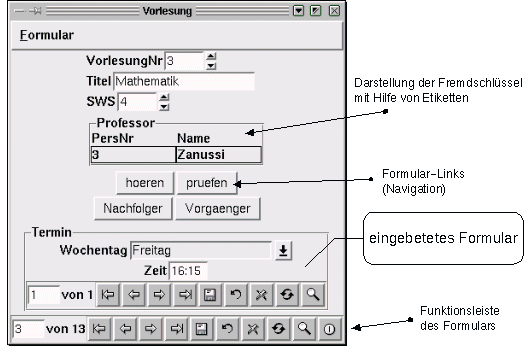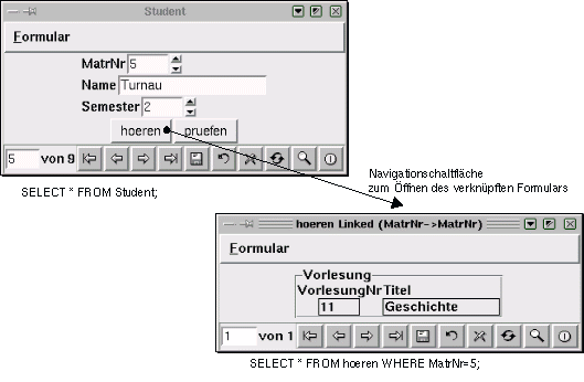 Die Formular-Links funktionieren etwa wie Anweisung: Öffne den Formular mit allen Objekten, die mit diesen Objekt verknüpft sind (ein Fremdschlüssel darauf haben).