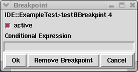 setting conditional expression. This script will be evaluated in breakpoint (method) context. If the return result will be true the breakpoint will caused debugger invocation. In another case (false, 0, error) the breakpoint has no effect. Warning the condition is not expression but script. The simplest one were