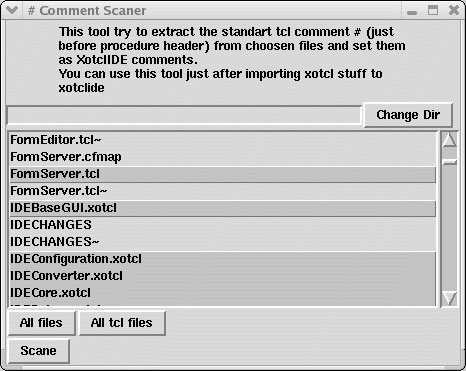 The another way to importing your application is to start XOTclIDE from your application and introspect it with XOTclIDE. XOTclIDE can import procedures and XOTcl object classes directly from Tcl interpreter. To start XOTclIDE from your application you can use START.tcl script in XOTclIDE directory. Please change the working directory to the XOTclIDE directory (with START.tcl script).