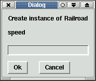 Now it is time to create some instance of Railroad class. Select the Railroad class in Class view and choose the menu Class->Create Instance you will see following dialog